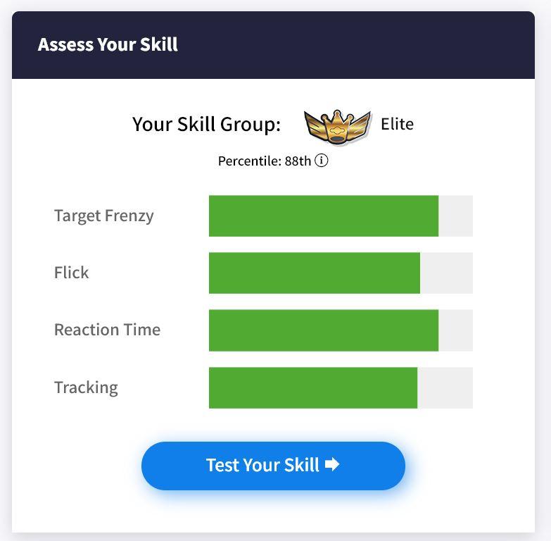There are lots more training drills, routines and even a full interactive training course over at the Aiming.Pro aim trainer. So head over there and take the skill assessment to see how our current skill compares to the rest of the world: