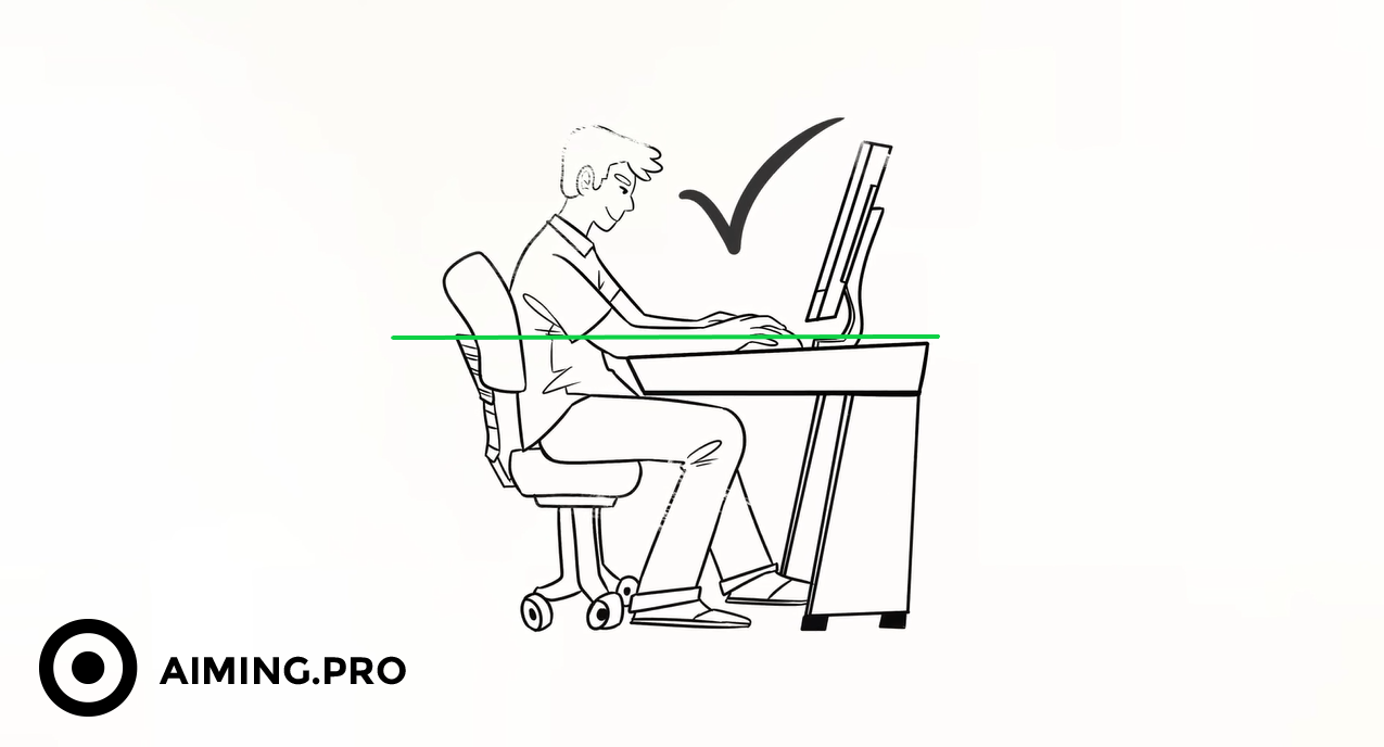 Having the correct elbow height, relative to your desk is critical to ensuring your pivot point operates correctly. Ensure that your elbow is at the same level or slightly below your mouse.
